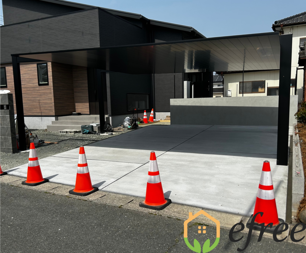 カーポート・アプローチ・石テラス・タイルテラス・芝張り・門柱・フェンス・土工事等